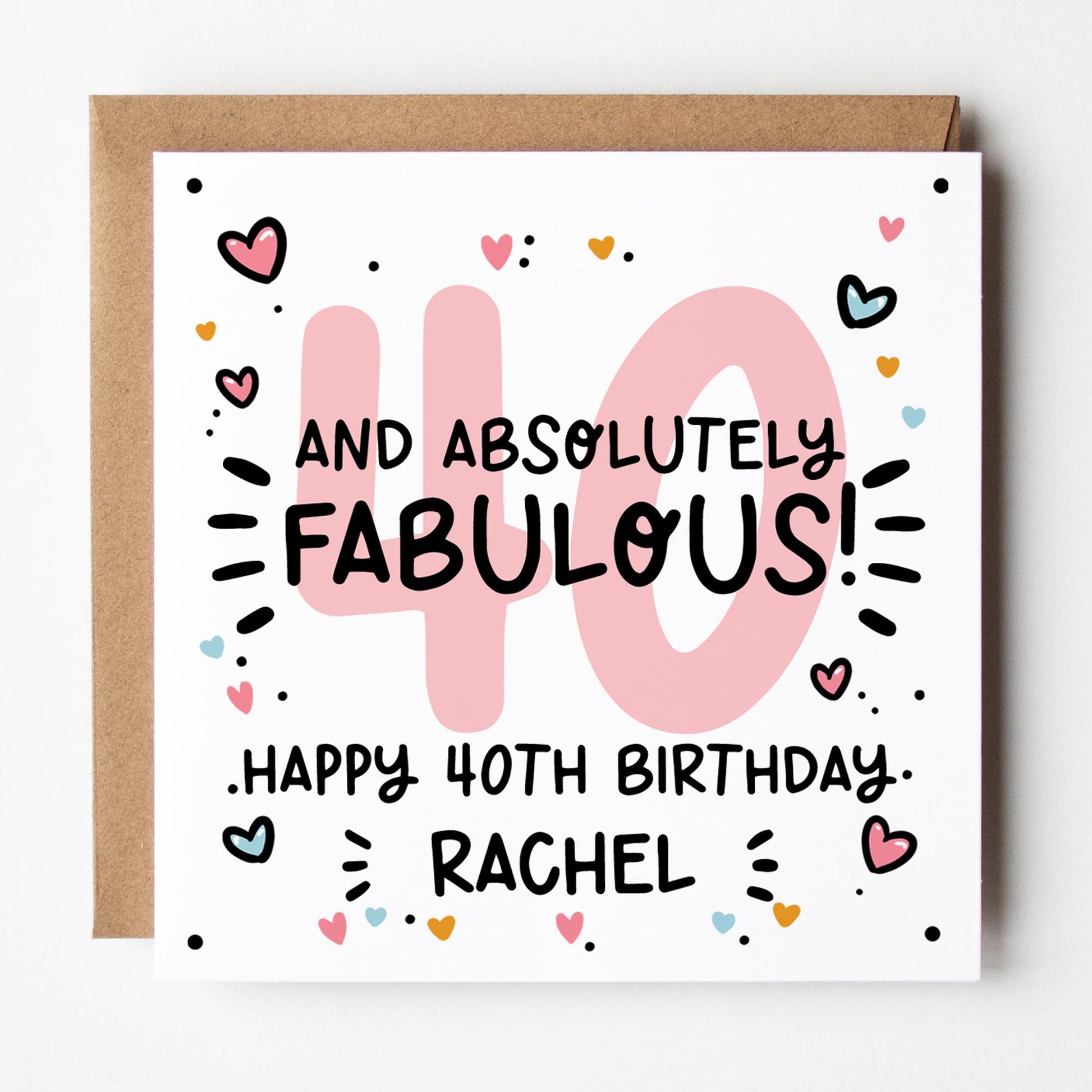 Fabulous 40th Birthday Card for Her, Personalised with Kraft envelope